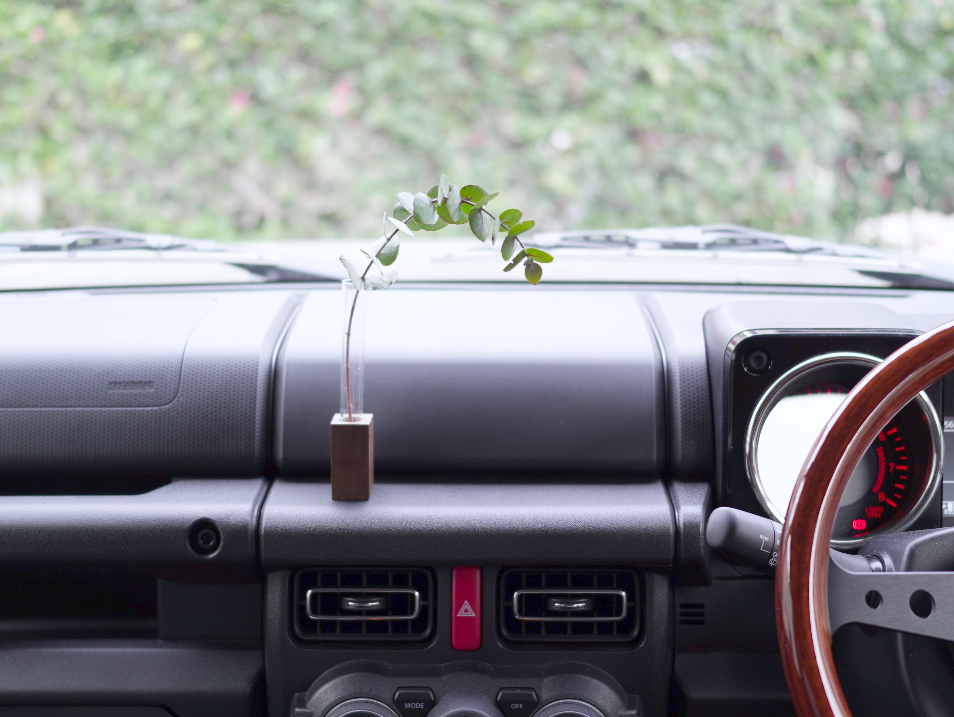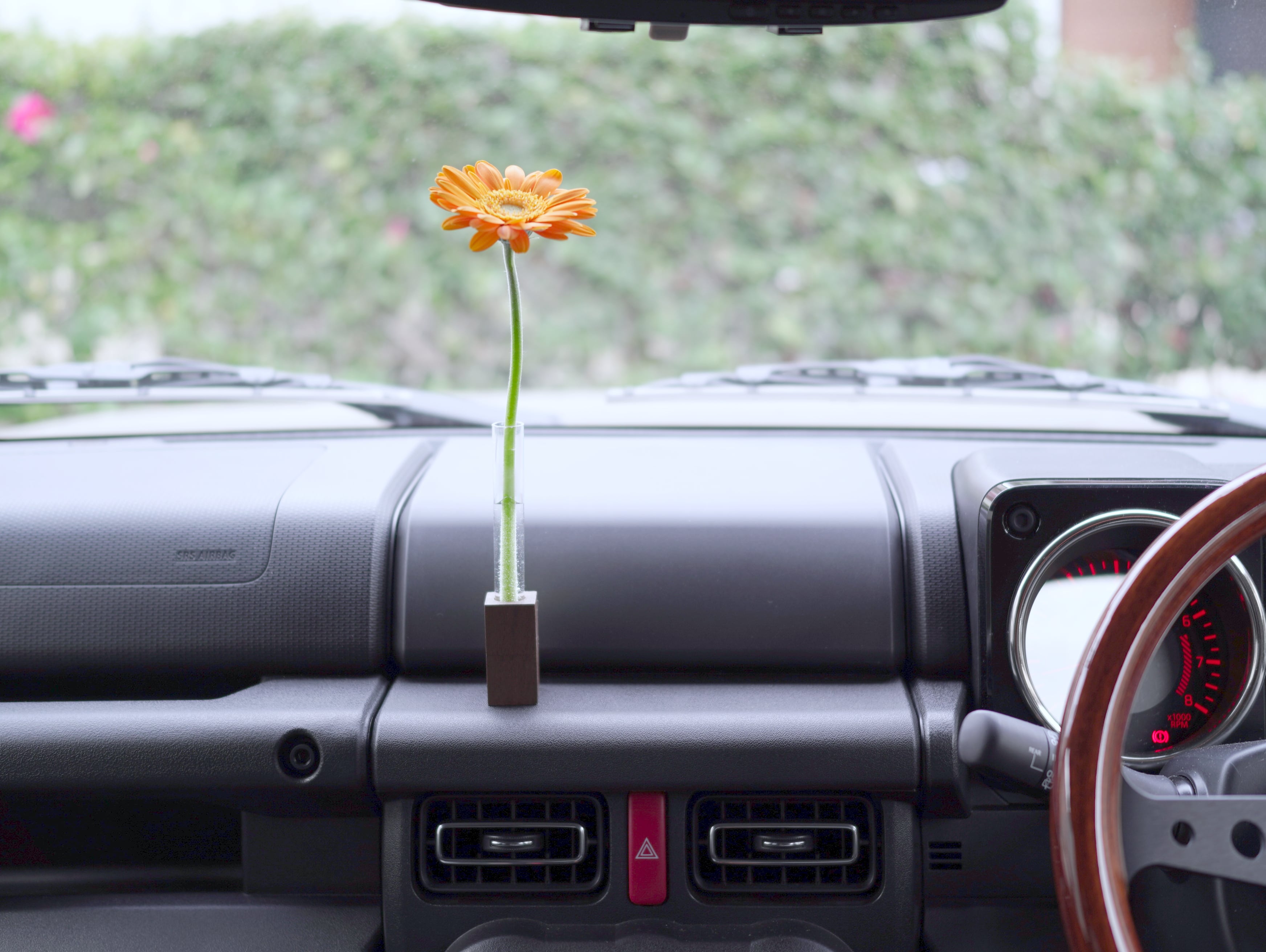 お気に入りの花が無機質な車内に彩りを与えてくれます。